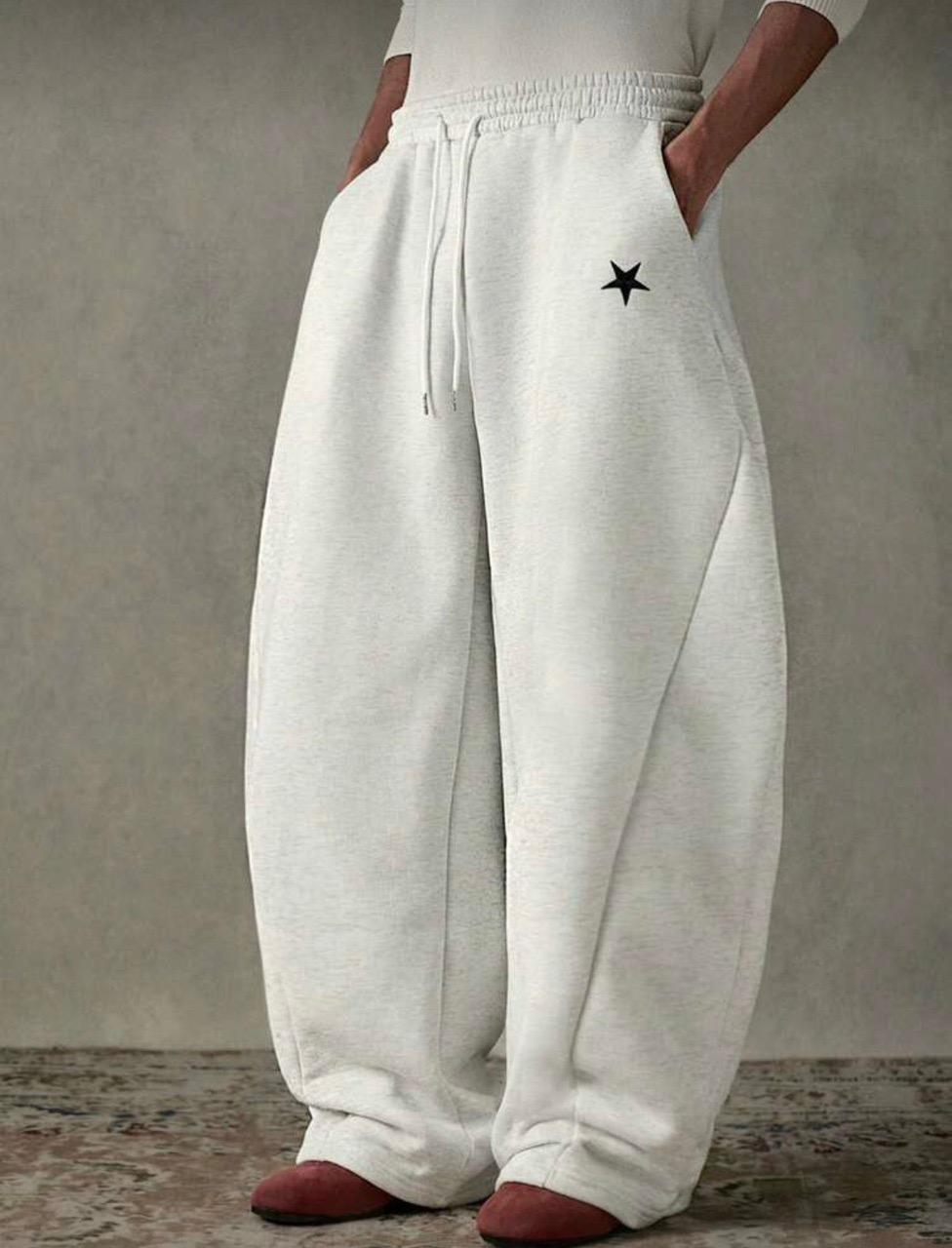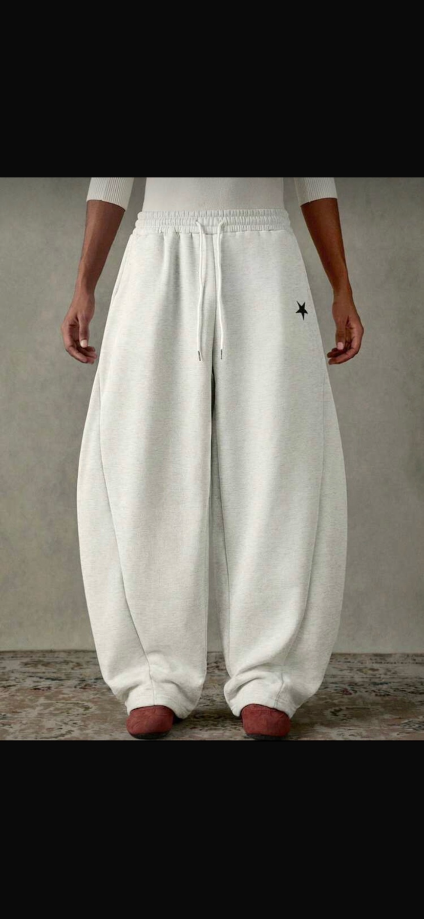Men's Standard Size Casual Sweatpants, Light Gray With Embroidered Patchwork Design, Spring/ Autumn