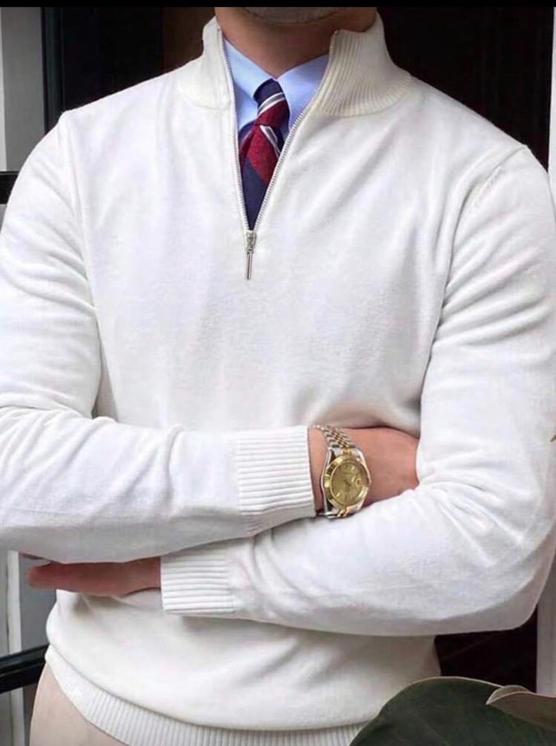 Men's Loose Fit Stretchy Solid Color Minimalist Long Sleeve Zip-Up Stand Collar Sweater, utumn/Winter